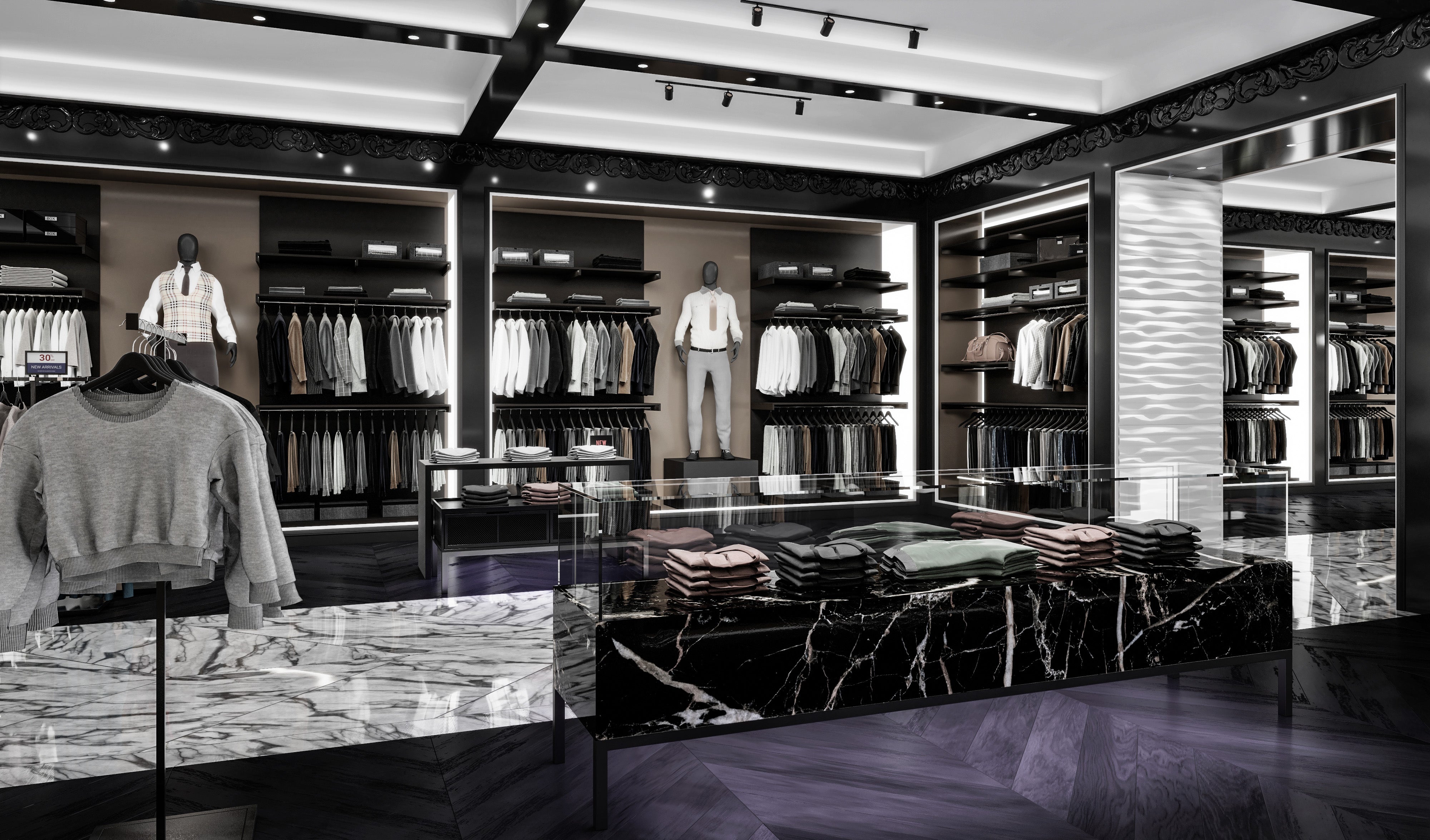 Step into a world of luxury and elegance with our exquisite store fixtures designed exclusively for clothing stores. We are committed to delivering highly qualitative products and ensuring a seamless customer experience that will elevate your retail space to new heights. With our expertise in the industry, we provide a comprehensive range of top-of-the-line fixtures tailored specifically to meet the unique needs of clothing retailers.